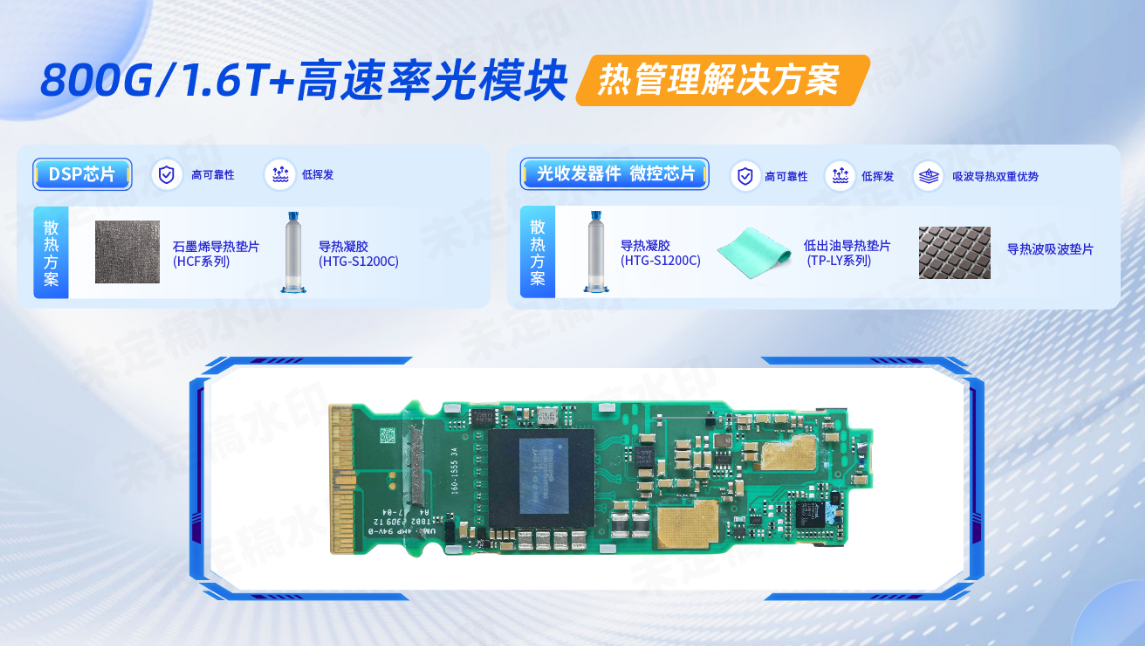 鸿富诚依托深厚的材料研发积淀,推出包括高性能导热垫片、凝胶、取向石墨烯导热垫片在内的多元化热管理产品矩阵,致力于为光模块提供从芯片级到系统级的全方位散热保障。