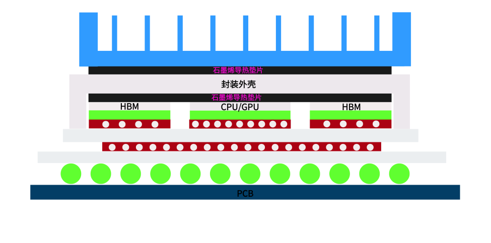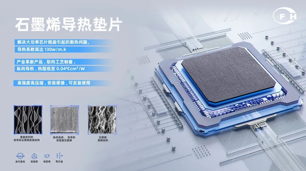 将鸿富诚石墨烯导热垫片应用于封装,直接覆盖 GPU、HBM 等核心芯片背面,可实现三重关键价值: