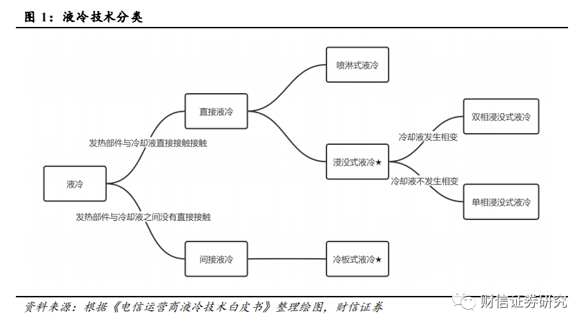 液冷是一种用液体来冷却电子设备的散热技术,能够显著提高数据中心散热效率。液冷技术根据冷却液与发热器件的接触方式不同,可以分为间接液冷和直接液冷,其中间接液冷主要包括冷板式液冷,直接液冷包括浸没式液冷和喷淋式液冷。冷板式液冷和浸没式液冷是目前主流的液冷形式,冷板式液冷应用最为广泛,在改造成本、可维护性、兼容性方面具备优势;浸没式液冷冷却效果最好,节能性上优势明显,但可维护性和兼容性一般,多用于高功率密度机柜。
