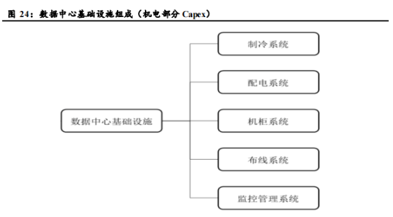 机电部分包括制冷系统、配电系统、机柜系统、布线系统和监控管理系统的购置和安装成本,不考虑IT设备成本。